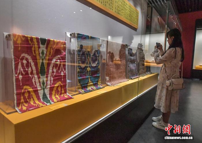 8月26日,乘客正在新疆专物馆观光“故乡新回——康雍坤时代新疆文物铺”。中新社记者 刘新 摄
