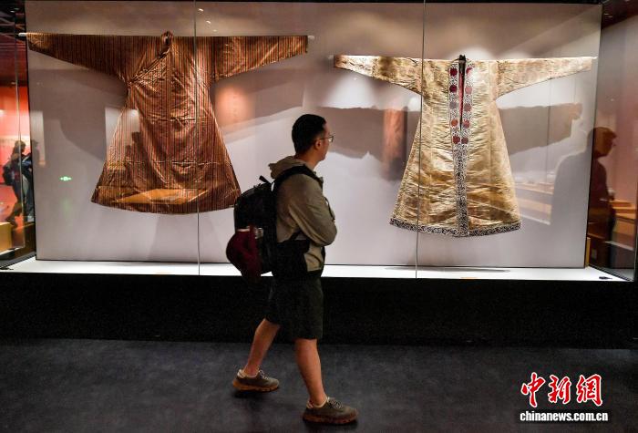 8月26日,乘客正在新疆专物馆观光“故乡新回——康雍坤时代新疆文物铺”。中新社记者 刘新 摄